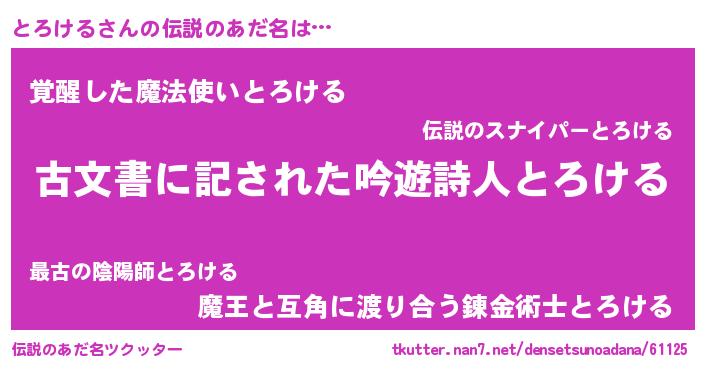 | 男性向けラノベタイトル風あだ名 | 『とろける~年齢イコール彼女いない歴の魔法使い~』 |