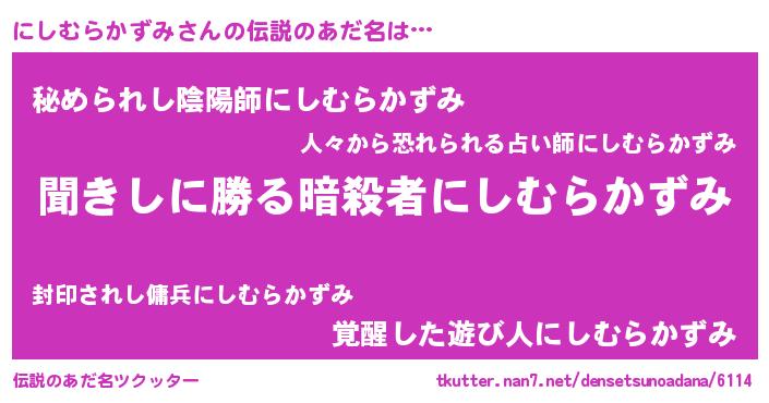 | 意味不明あだ名 | 『自称にしむらかずみ』 |