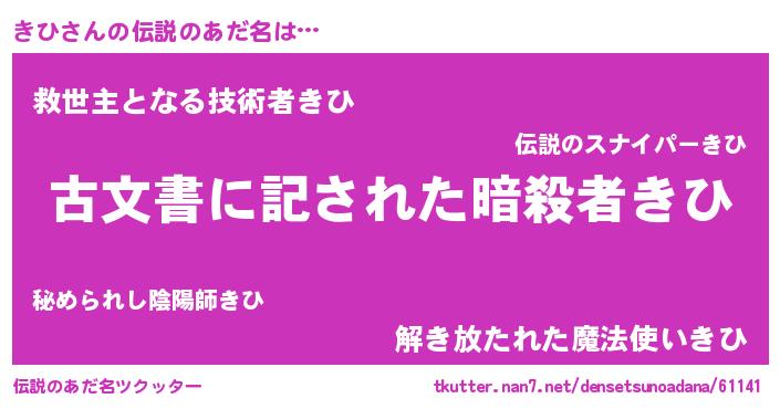 | ヒーロー風カッコイイあだ名 | 『ネオキヒ』『天空の使者きひ』 |