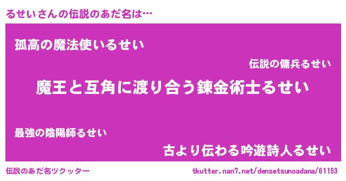 | 女子向けラノベタイトル風あだ名 | 『るせい恋絵巻』『横柄るせいと宰相陛下』 |