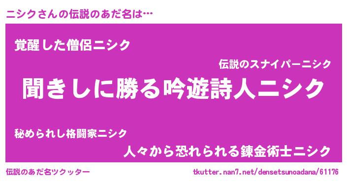 | ファンタジー風あだ名 | 『ニシディッシュ』『ファントムニシス』 |