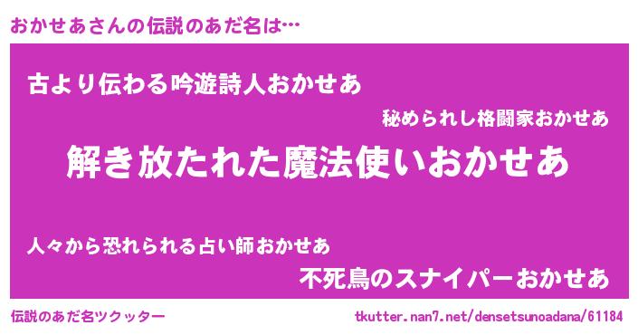 | 胡散臭い通販商品みたいなあだ名 | 『伝統あるサプリメント…その名も「おかせあ」』 |