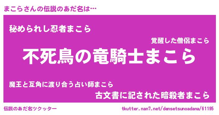 | ヒーロー風カッコイイあだ名 | 『スーパーマコラ』『サイバー戦士マコラ』 |