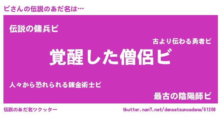 | ヒーロー風カッコイイあだ名 | 『仮面ビダー』『黄金騎士ビ』 |