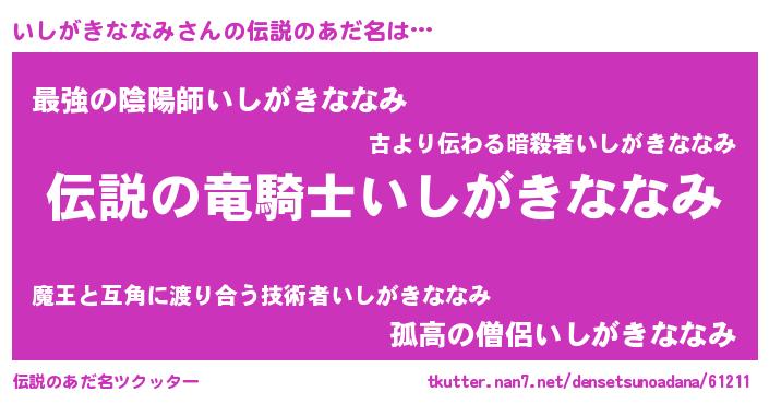 | 胡散臭い通販商品みたいなあだ名 | 『必ず成功するブレスレット…その名も「いしがきななみ」』 |