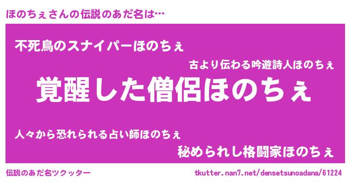 | 意味不明あだ名 | 『住所不定無職ほのちぇ(65歳)』 |