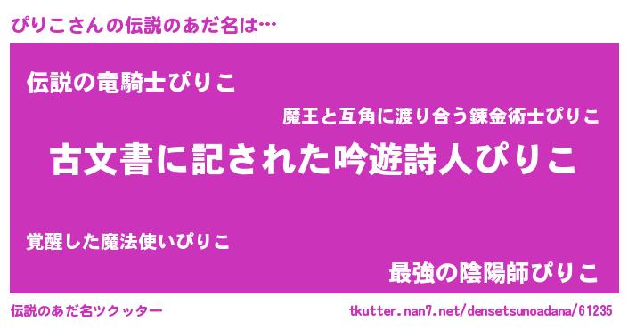 | 意味不明あだ名 | 『自称ぴりこ』『永久保存ぴりこ』 |