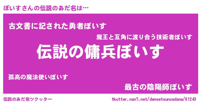 | ヒーロー風カッコイイあだ名 | 『仮面ボイダー』『ウルトラ戦士ボイス』 |