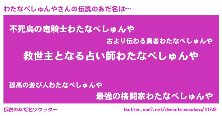 | 意味不明あだ名 | 『ニラ科わたなべしゅんや属』 |