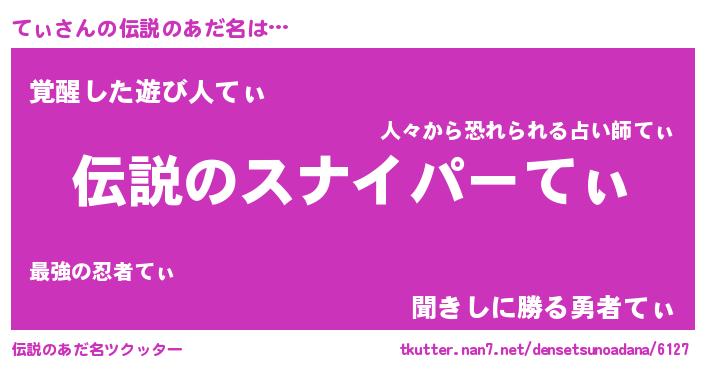 | 胡散臭い通販商品みたいなあだ名 | 『必ず成功する霊験あらたかなお札…その名も「てぃ」』 |
