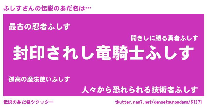 | ファンタジー風あだ名 | 『フシフェル』『エターナルフシスー』 |