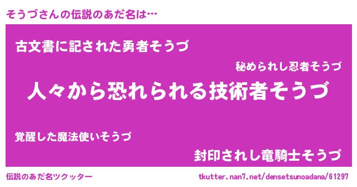 | ヒーロー風カッコイイあだ名 | 『仮面ソウダー』『慈愛の使者そうづ』 |
