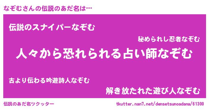 | 意味不明あだ名 | 『自称なぞむ』『眠気覚ましガムなぞむ味』 |