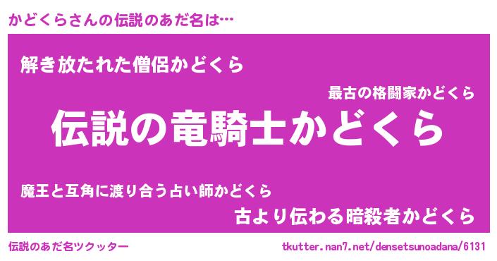 | 男性向けラノベタイトル風あだ名 | 『かどくらの憂鬱』 |