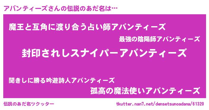 | 意味不明あだ名 | 『自称アバンティーズ』 |