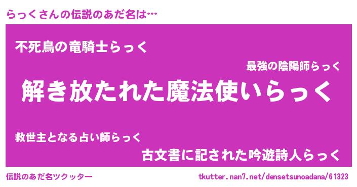 | ヒーロー風カッコイイあだ名 | 『魔戒騎士ラッ』『スーパーラック』 |