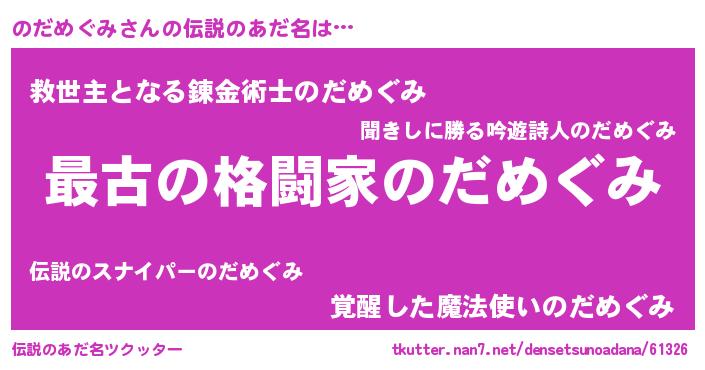 | ファンタジー風あだ名 | 『エターナルノダメグミー』 |