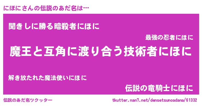 | 意味不明あだ名 | 『住所不定無職にほに(10歳)』『自称にほに』 |