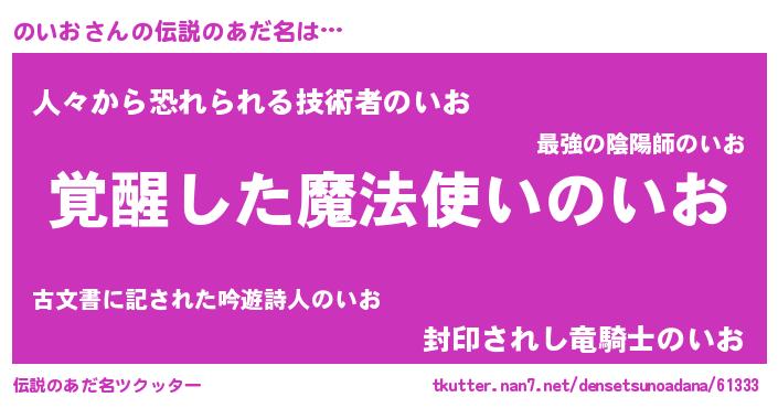 | 女子向けラノベタイトル風あだ名 | 『横柄のいおと宰相陛下』『のいお恋絵巻』 |