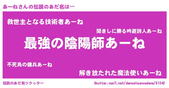 | 意味不明あだ名 | 『あーねフォーエバー』『自称あーね』 |