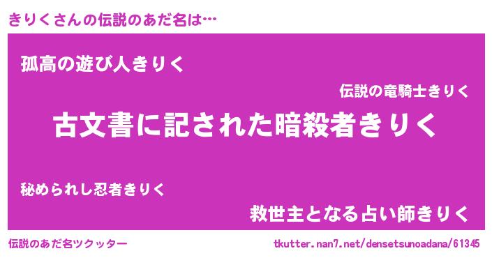 | 男性向けラノベタイトル風あだ名 | 『誰もが恐れるあのきりくが、ぼくの専属メイドになるようです。』 |
