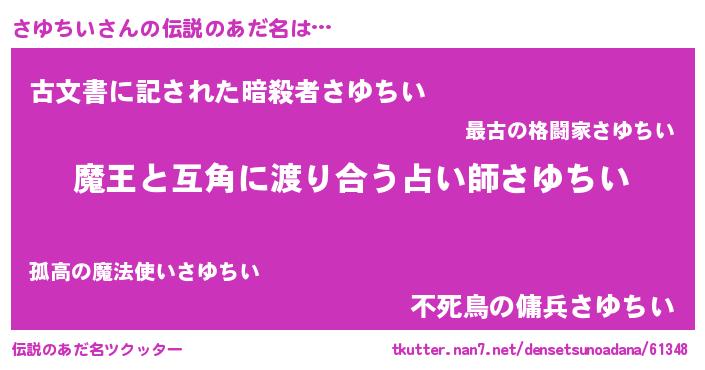| 男性向けラノベタイトル風あだ名 | 『魔法科高校のさゆちい』 |