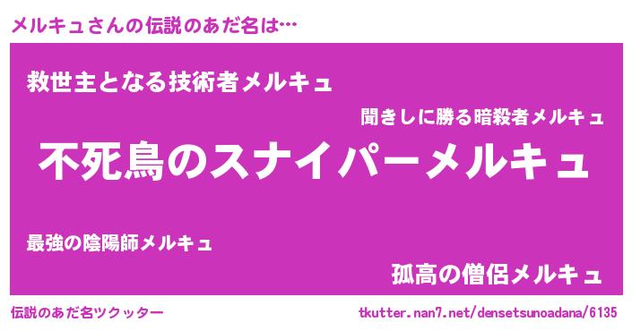 | ヒーロー風カッコイイあだ名 | 『スーパーメルキュ』『仮面メルダー』 |