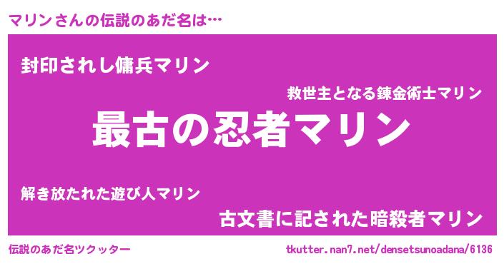 | 意味不明あだ名 | 『マリンフォーエバー』『ペロリンマリン』 |
