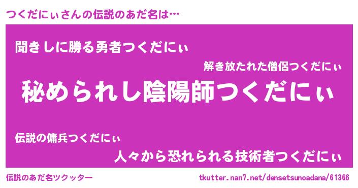 | ファンタジー風あだ名 | 『エターナルツクダニィー』『ゼツクトゥ』 |