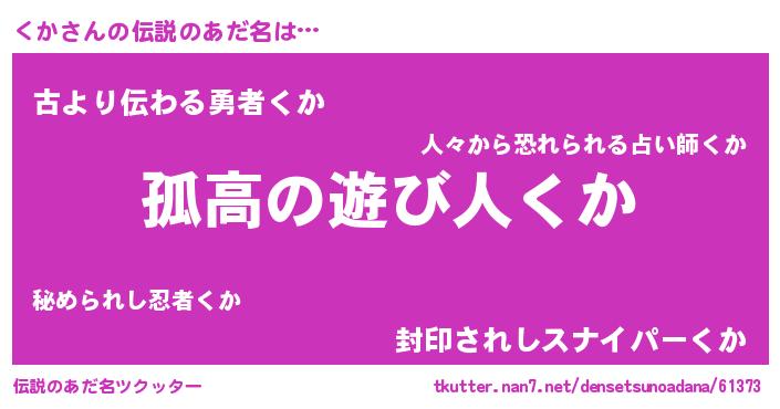 | 女子向けラノベタイトル風あだ名 | 『くかは平凡を望む』『くかアンティーク』 |
