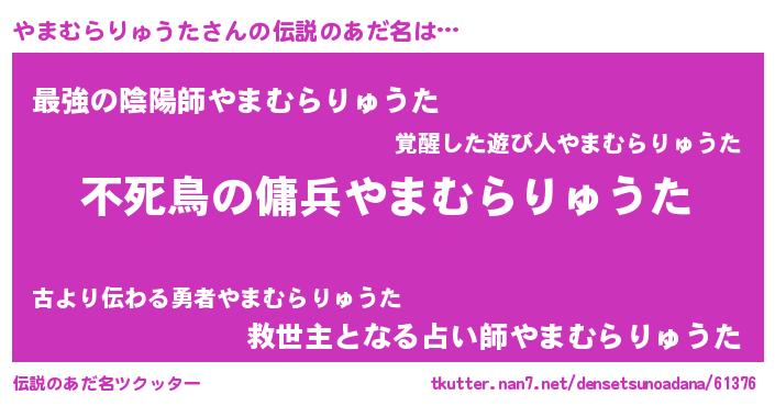 | 男性向けラノベタイトル風あだ名 | 『はたらくやまむらりゅうたさま!』 |