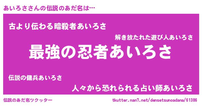 | 意味不明あだ名 | 『あいろさフォーエバー』『自称あいろさ』 |