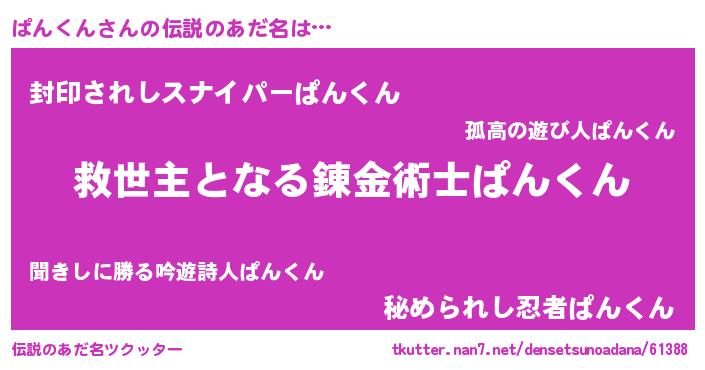 | ヒーロー風カッコイイあだ名 | 『慈愛の使者ぱんくん』『仮面パンダー』 |