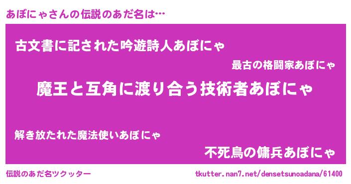 | 欧米人風あだ名 | 『ダニエルあぼにゃ』『マイケルあぼにゃ』 |