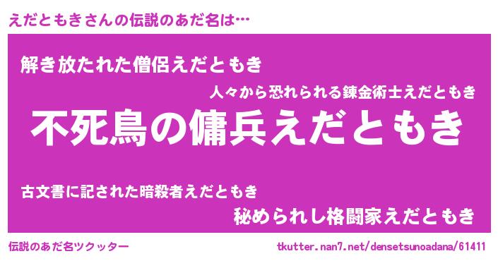 | ヒーロー風カッコイイあだ名 | 『スーパーエダトモキ』『幻影騎士エダ』 |
