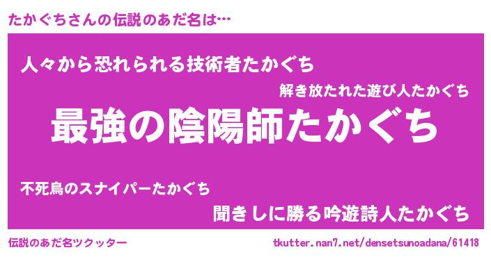 | 意味不明あだ名 | 『住所不定無職たかぐち(79歳)』 |