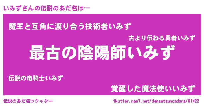 | 意味不明あだ名 | 『いみずフォーエバー』『自称いみず』 |