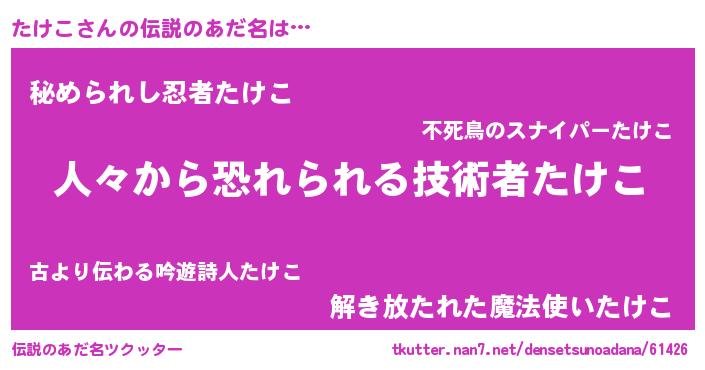 | ポケモン風あだ名 | 『タックウザ』『タケコダネ』 |