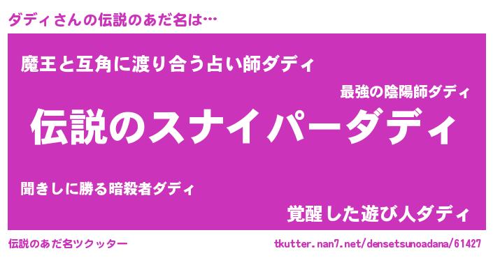 | ヒーロー風カッコイイあだ名 | 『スーパーダディ』『愛の使者ダディ』 |