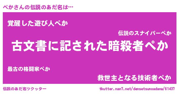 | 男性向けラノベタイトル風あだ名 | 『この素晴らしい世界にぺかを!』 |