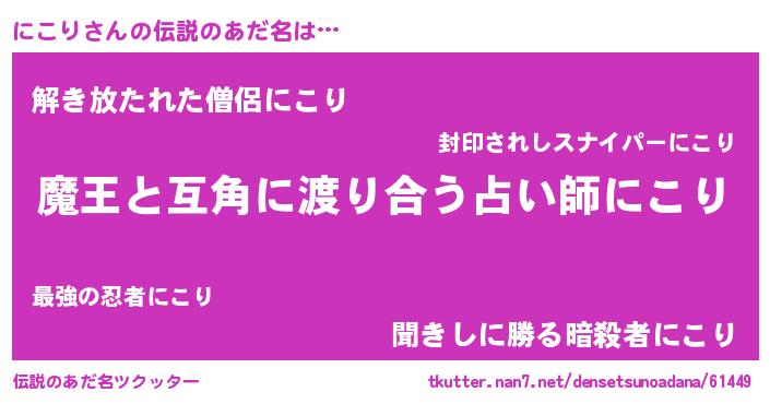 | 意味不明あだ名 | 『なめこ科にこり属』『自称にこり』 |