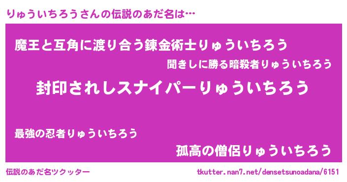 | ヒーロー風カッコイイあだ名 | 『スーパーリュウイチロウ』 |