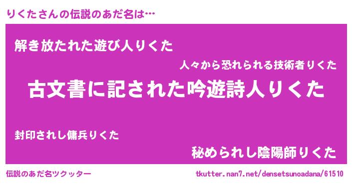 | 意味不明あだ名 | 『永久保存りくた』『自称りくた』 |