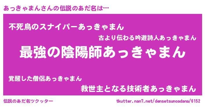 | ファンタジー風あだ名 | 『エターナルアッキャマンー』 |