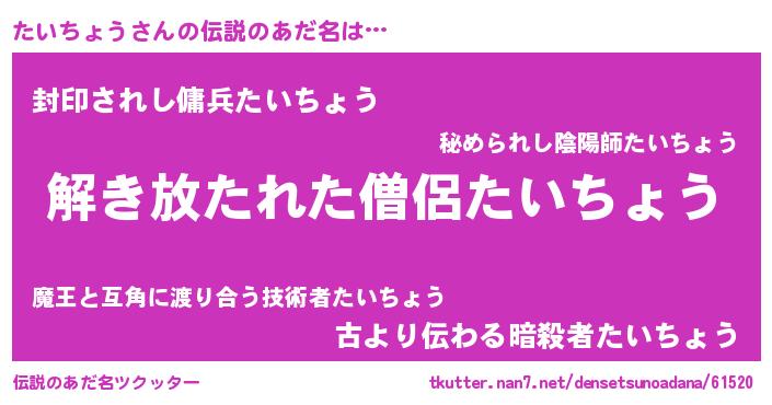 | ヒーロー風カッコイイあだ名 | 『仮面タイダー』『天弓騎士タイ』 |
