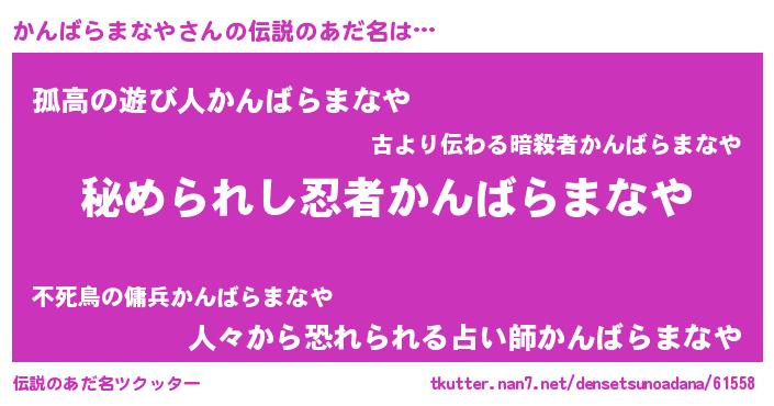 | 意味不明あだ名 | 『住所不定無職かんばらまなや(62歳)』 |