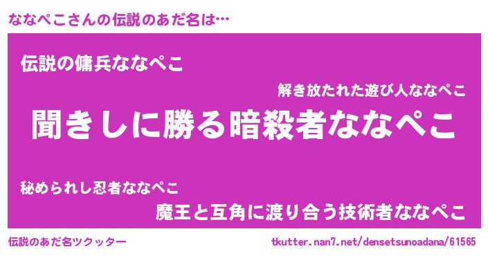 | 男性向けラノベタイトル風あだ名 | 『ななぺこという概念が存在しない退屈な世界 』 |