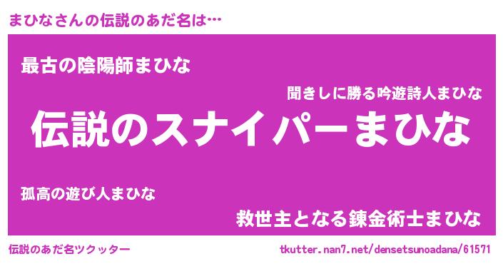 | ヒーロー風カッコイイあだ名 | 『仮面マヒダー』『スーパーマヒナ』 |