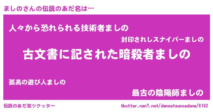 | ファンタジー風あだ名 | 『ゼマシトゥ』『マシディッシュ』 |