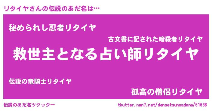 | ヒーロー風カッコイイあだ名 | 『慈愛の使者リタイヤ』『仮面リタダー』 |